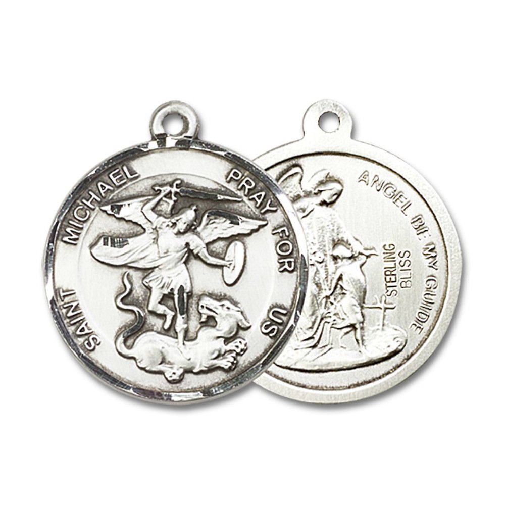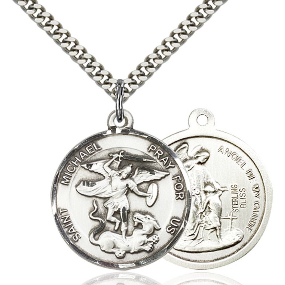 Sterling Silver St Michael the Archangel Pendant 1 x 7/8 inches with Heavy Curb Chain